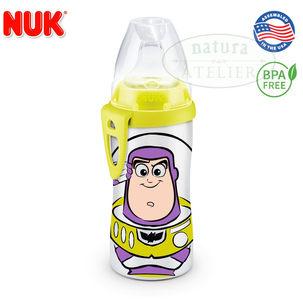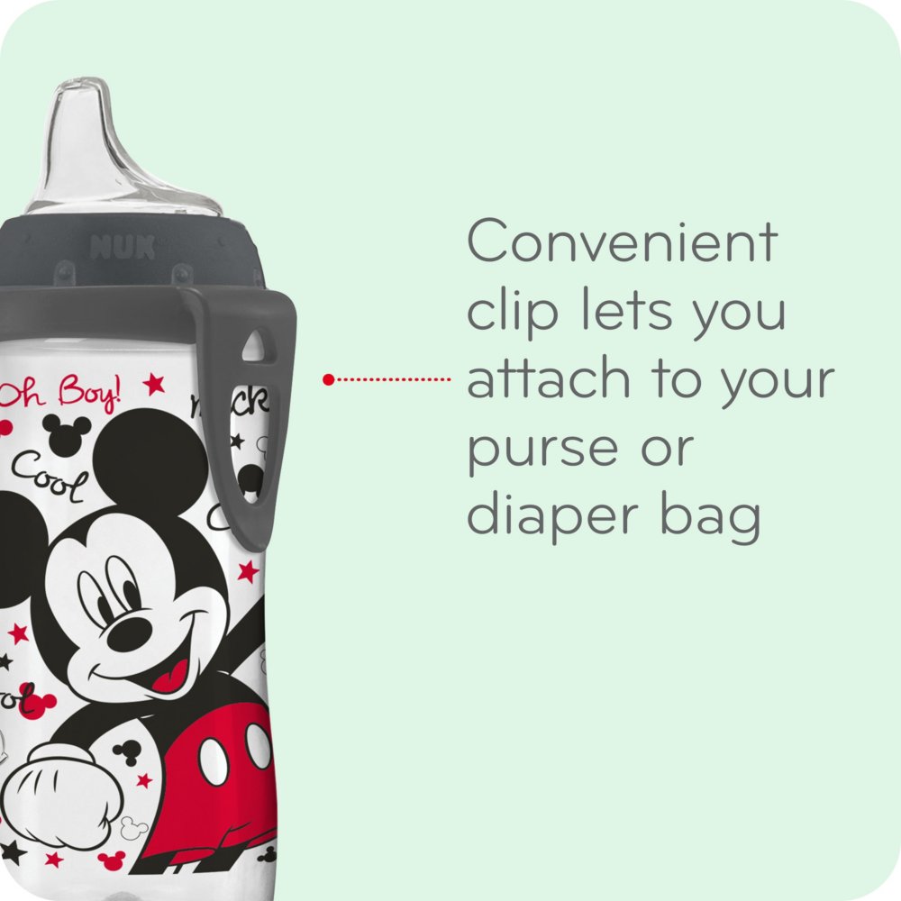 NUK Disney Active Cup 10oz. This unique cup is perfect for children who are ready to drink from a cup without handles but prefer a soft spout that is gentle on their teeth and gums. All NUK Active Cups are ultra lightweight with a convenient clip to make carrying easy for mom and baby.