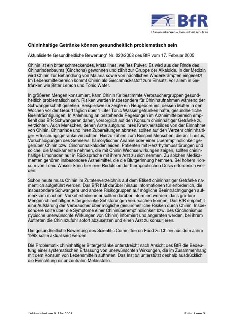 Chinin wirkung in getränken. Außerdem hat es eine fiebersenkende Wirkung und kann Erkältungskrankheiten vorbeugen. In der Lebensmittelindustrie verleiht Chinin Getränken wie Tonic Water oder Bitter Lemon den einmalig bitteren Beigeschmack. Wirkung Anwendungsgebiete Nebenwirkungen.